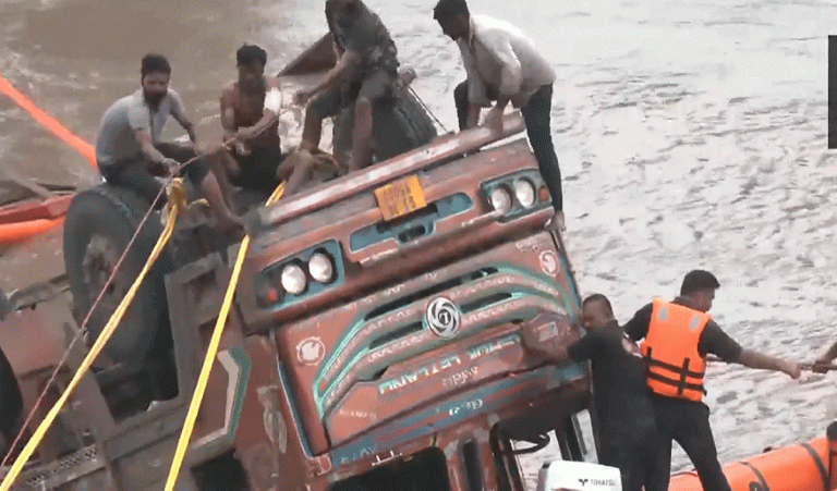 गुजरात में गंभीरा पुल के ढह जाने के बाद बुधवार को वाहनों के महिसागर नदी में गिर जाने से कम...