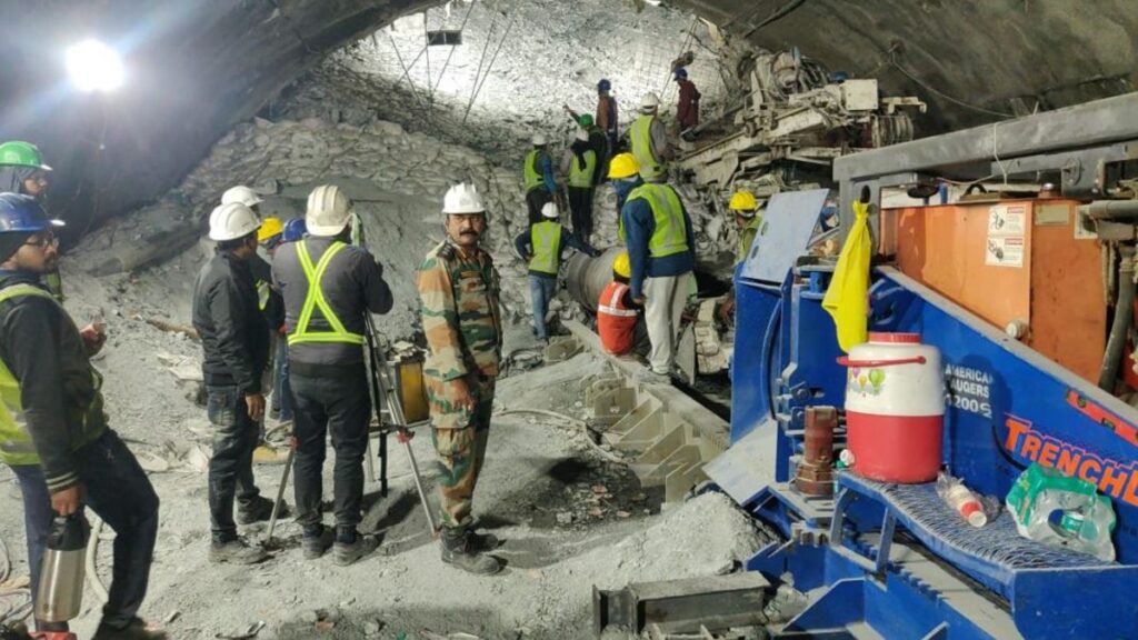 उत्तराखंड के उत्तरकाशी जिले में ऑल वेदर रोड बन रही है। इसी सड़क पर सिलक्यारा से बड़कोट तक सुरंग खोदने का काम जारी था। 12 नवंबर को तड़के करीब 5.30 बजे जब 41 मजदूर काम कर रहे थे, तो अचानक सिलक्यारा सुरंग में धंसाव हो गया। इस धंसाव से 60 मीटर तक मलबा इस सुरंग में भर गया और सभी मजदूर उसके पीछे फंस गए। बड़ी मुश्किल से मजदूरों तक भोजन, दवा और अन्य जरूरी चीजें पहुंचाई जा रही हैं। उनके लिए सुरंग में लैंडलाइन फोन की व्यवस्था भी की गई है। ताकि वे घरवालों से बात कर सकें। वहीं, सेना, एनडीआरएफ, विदेशी बचावकर्मी समेत कई एजेंसियां मजदूरों को बचाने के काम में जुटी हैं।