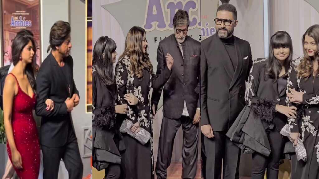 नई दिल्ली। The Archies का बीती रात मुंबई में प्रीमियर रखा गया। ये फिल्म 7 दिसंबर से Netflix पर स्ट्रीम करेगी। इस फिल्म से बच्चन परिवार के थर्ड जेनरेशन अमिताभ बच्चन के नाती यानी श्वेता बच्चन नंदा और निखिल नंदा के बेटे अगस्त्य नंदा, सुपरस्टार शाहरुख़ खान की बेटी सुहाना खान और दिवंगत अभिनेत्री श्रीदेवी की बेटी ख़ुशी कपूर अपना एक्टिंग डेब्यू करने जा रहीं हैं। ऐसे में अपने-अपने बच्चों को सपोर्ट करने इस फिल्म के प्रीमियर में बॉलीवुड के बादशाह शाहरुख खान से लेकर महानायक अमिताभ बच्चन तक सभी नजर आए। लेकिन इस दौरान जिसपर सभी की निगाहें जाकर टिक गई वो और कोई नहीं बल्कि बच्चन परिवार था। तो चलिए जानते हैं पूरा माजरा विस्तार से…