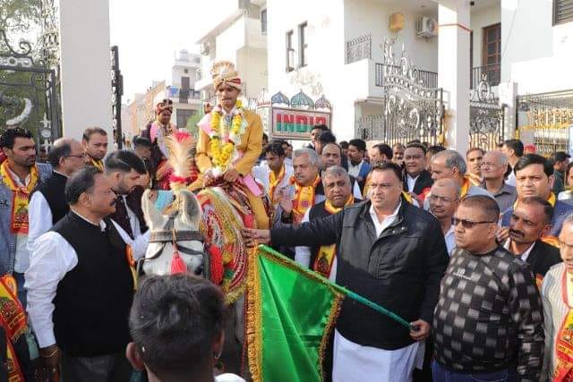 इस मौके पर 81 दूल्हे एक साथ घोड़ी पर सवार हुए जिन्हें झंडी दिखाकर लखन कुमार सिंगला ने रवाना किया। 80 दूल्हों की बारात ढोल नगाड़ों की थाप के साथ सेक्टर-19 अग्रसेन भवन पहुंची, जहां जगह-जगह उनका भव्य स्वागत किया। इस अवसर पर वरिष्ठ कांग्रेसी नेता लखन सिंगला ने कहा कि समाज में गरीब कन्याओं का विवाह करवाना सबसे पुण्य का कार्य है और महाराजा अग्रसेन विवाह समिति हर वर्ष यह नेक कार्य करती है। समाज की अन्य सामाजिक व धार्मिक संस्थाओं को भी ऐसे नेक कार्याे में बढ़चढक़र भागेदारी निभानी चाहिए।