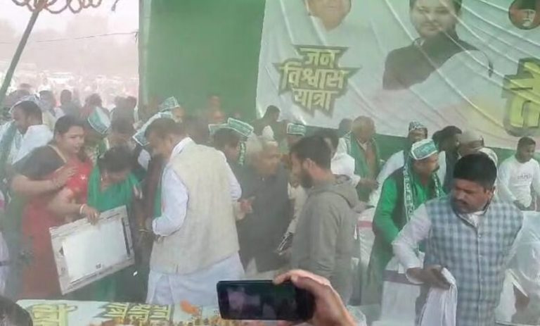 मची अफरातफरी, तेजस्वी के भाषण से पहले टूटा मंच