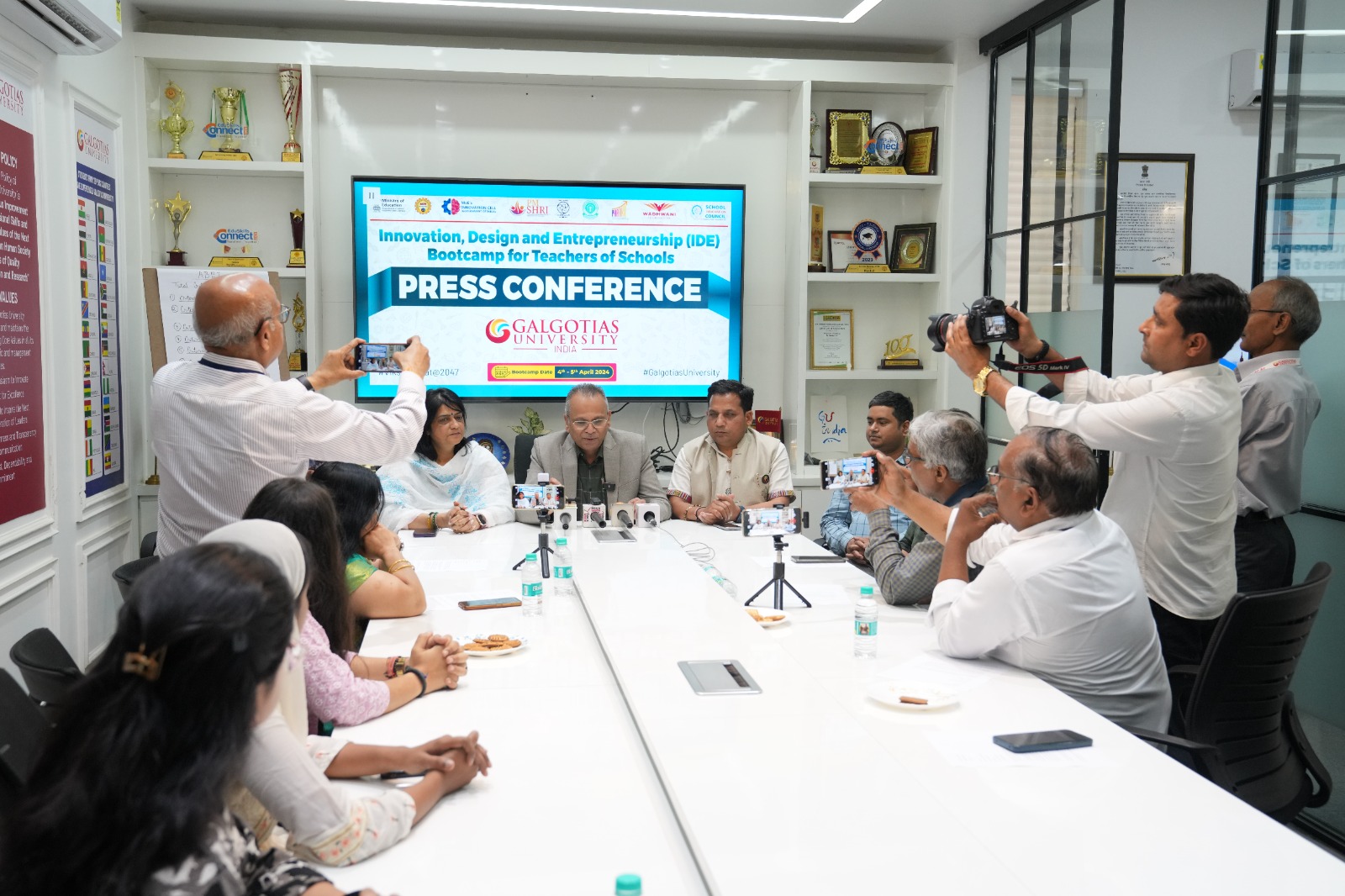 गलगोटियास विश्वविद्यालय में स्कूल शिक्षकों के लिए नवाचार, डिजाइन और उद्यमिता (आईडीई) बूटकैंप के आयोजन से पहले “प्रेस कॉन्फ़्रेंस” का सफल आयोजन