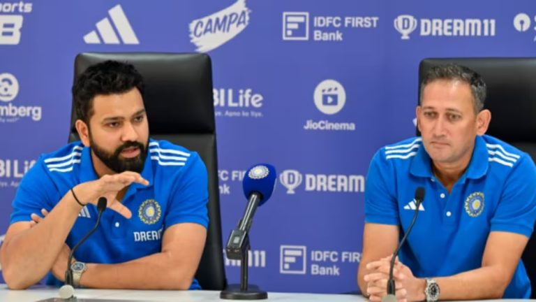 नई दिल्ली। टी20 विश्व कप के लिए भारतीय टीम की घोषणा के बाद मुख्य चयनकर्ता अजीत अगरकर और भारतीय टीम के रोहित शर्मा ने आज मुंबई में एक प्रेस कॉन्फ्रेंस की। अगरकर और रोहित ने इस प्रेस कॉन्फ्रेंस में टीम में के.एल. राहुल जैसे अनुभवी खिलाड़ी को न चुने जाने समेत कई अन्य सवालों के जवाब दिए। भारतीय टीम में 4 स्पिनर चुने जाने के जवाब में कप्तान रोहित शर्मा ने कहा, ‘मैं अभी सब कुछ नहीं बता सकता। मैं ज्यादा नहीं बोलूंगा क्योंकि विरोधी कप्तान भी सुन रहे होंगे। रोहित बोले, मैं वेस्टइंडीज में खुलासा करूंगा कि 4 स्पिनर क्यों चुने गए हैं।