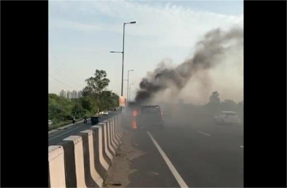 जलकर हुई खाक…चालक और दोस्त ने कूद कर बचाई जान, चलती कार बनी आग का गोला
