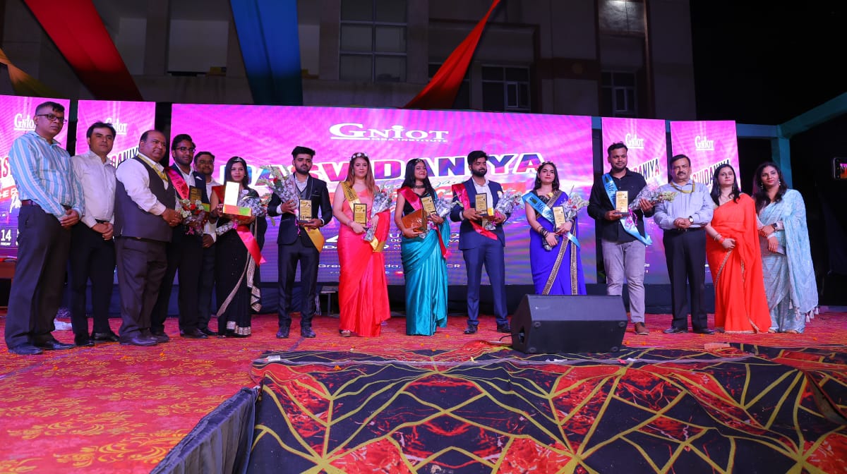 हिंद फॉक्स न्यूज/ गौतम बुध नगर :- नालिज पार्क -२ स्थित जीएनआईओटी एमबीए संस्थान के जूनियर विद्यार्थियों ने सीनियर विद्यार्थियों के लिए फेयरवेल पार्टी ‘दसविदानिया’ का आयोजन किया। समारोह के दौरान सीनियर विद्यार्थियों एवं अध्यापकों का फूलों की वर्षा व तिलक लगाकर स्वागत किया गया। माँ सरस्वती का वंदन एवं माल्यार्पण करने के पश्चात पार्टी का शुभारम्भ किया गया। सीनियर्स के सम्मान मे जूनियर्स ने विभिन्न प्रकार के सांस्कृतिक कार्यक्रम जैसे नृत्य, गायन, कविताएँ, शायरी आदि प्रस्तुत किये। सुंदर व रंग-बिरंगे परिधानो से सजे विद्यार्थियों की चहल-पहल से सारा कॉलिज परिसर गूंज उठा। सीनियर विद्यार्थियों द्वारा रैम्प वॉक एवं टेलेन्ट राऊण्ड के बाद उनकी प्रतिभा और प्रर्दशन के आधार पर विभिन्न श्रेणियों के अंर्तगत कई विजेताओं का चयन किया गया। एमबीए से मि. फेयरवेल-आदित्य झा, मिस फेयरवेल- र्स्वणिमा, मि. टेलेन्ट-वैभव, मिस टेलेन्ट खुशी त्यागी, मि. पर्सनेलिटी – विवेक कुमार, मिस पर्सनेलिटी सुरभी को चुना गया तथा इंटिग्रेटिड एमबीए में मि० फेयरवेल तथा मिस फेयरवेल के लिए नदीम एवं प्रियांशी को नवाजा गया।