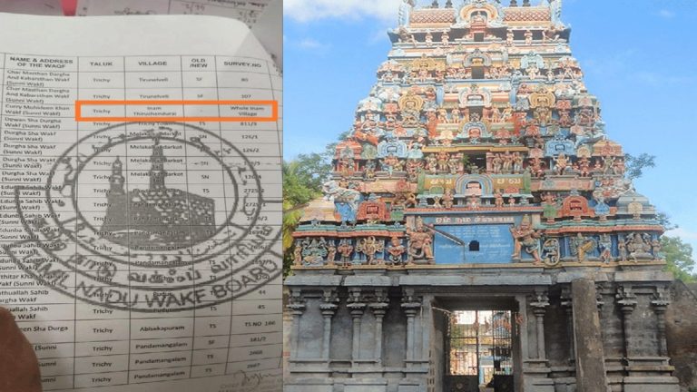 वक्फ बोर्ड ने अपनी असीमित शक्तियों का इस्तेमाल करते हुए कई भूखंडों और संपत्तियों पर अपना दावा करते हुए अधिकार जमा रखा है। तमिलनाडु के तिरुचि जिले के तिरुचेंथुरई गांव में ऐसा ही एक चौंकानेवाला मामला सामने आया जहां वक्फ बोर्ड ने 1500 साल पुराने मंदिर समेत पूरे गांव की जमीन पर दावा कर रखा है। दरअसल तिरुचेंथुरई गांव निवासी एक किसान राजगोपाल ने अपना लोन चुकाने के लिए जब अपनी खेती की जमीन बेचनी चाही तो रजिस्ट्रार दफ्तर से उसे बताया गया कि वो जमीन तो उसकी है ही नहीं। जमीन वक्फ बोर्ड की है और उसे जमीन बेचने के लिए वक्फ बोर्ड की एनओसी लानी पड़ेगी।