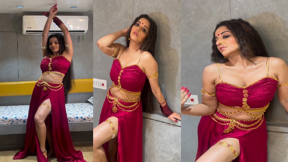मोनालिसा ने सोशल मीडिया पर एक वीडियो शेयर किया है,जिसमें वो मेहरून रंग के आउटफिट में दिख रही हैं।एक्ट्रेस ने खुद को गहनों से लाद रखा है और हाथों में मेहरून रंग की ढेर सारी चूड़िया भी पहन रखी हैं। एक्ट्रेस के बाल लंबे और कर्ल हैं, जो उनके लुक को डरावना बना रहे हैं। वीडियो में एक्ट्रेस पवन सिंह के गाने आई नहीं पर अपनी अदाएं दिखा रही हैं और अपने हुस्न के जलवों से फैंस को घायल कर रही हैं।