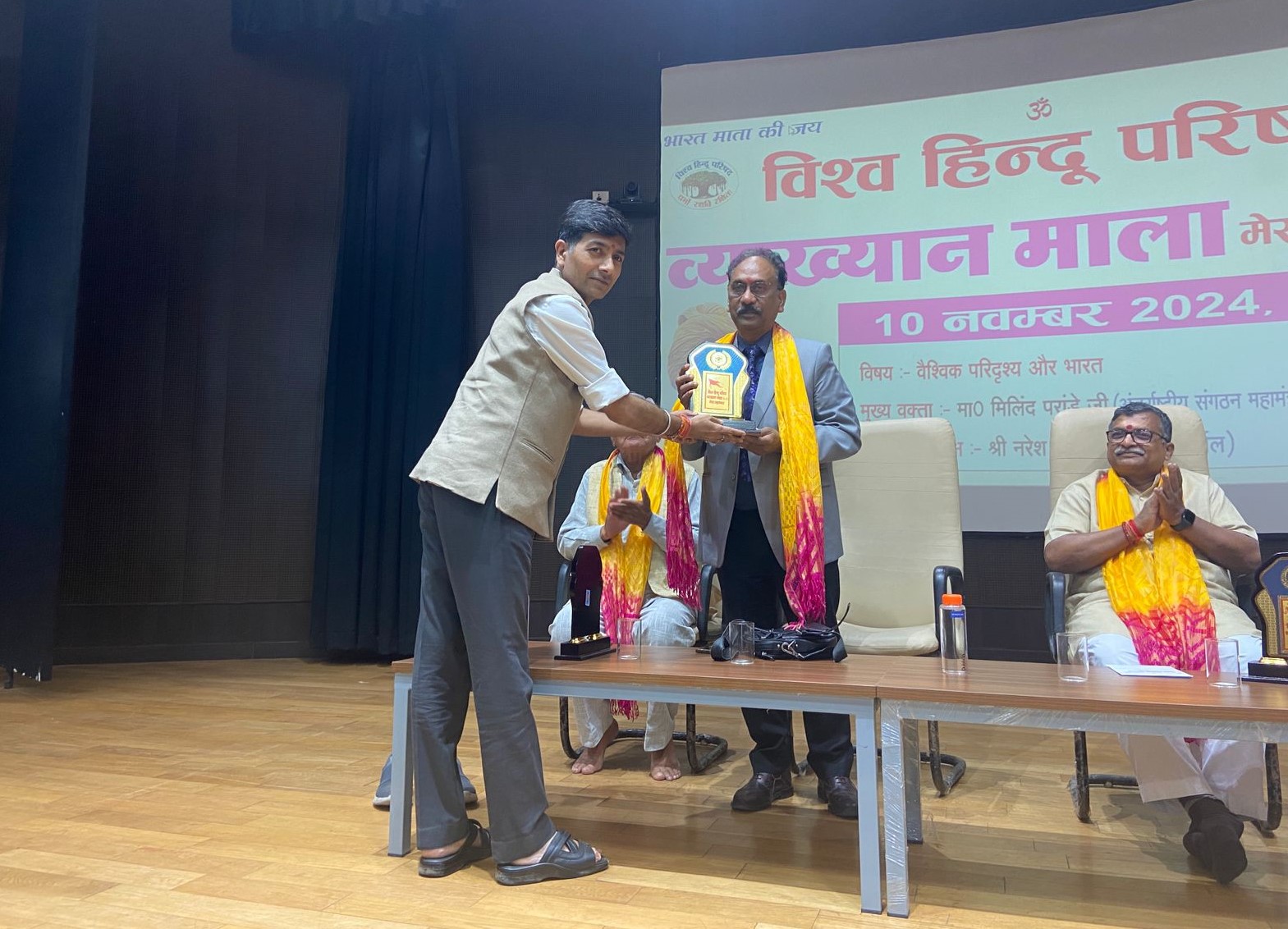 मेरठ महानगर के चौधरी चरण सिंह विश्वविद्यालय के अटल सभागार में विश्व हिंदू परिषद, व्याख्यान माला आयोजन समिति द्वारा आयोजित तीन दिवसीय व्याख्यानमाला के तृतीय दिवस पर वैश्विक परिदृश्य और भारत कार्यक्रम का शुभारंभ मुख्य वक्ता श्री मिलिंद परांडे अंतर्राष्ट्रीय संगठन महामंत्री विश्व हिंदू परिषद ,कार्यक्रम अध्यक्ष श्री नरेश (सेवानिवृत्त कर्नल),वी के शेखर प्रांत उपाध्यक्ष विहिप ,अमन सिंह प्रांत अध्यक्ष विहिप,समिति अध्यक्ष प्रमोद जैन द्वारा दीप प्रज्वलन कर किया गया।