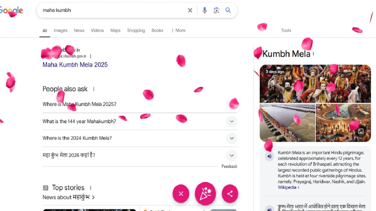 गूगल के इस प्रयास ने महाकुंभ को डिजिटल रूप से नया आयाम दिया है। श्रद्धालु और उत्साही इसे न केवल सर्च इंजन पर देख रहे हैं बल्कि पुष्पवर्षा जैसे इंटरैक्टिव फीचर का आनंद भी ले रहे हैं। यह पहल महाकुंभ के प्रति गूगल की आस्था और समर्पण को दर्शाती है।