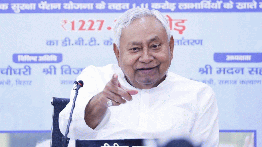 बिहार में विधानसभा चुनाव नजदीक आते ही, मुख्यमंत्री नीतीश कुमार ने शुक्रवार को पटना स्थित अपने सरकारी आवास से 1.11 करोड़ लाभार्थियों को सामाजिक सुरक्षा पेंशन वितरित की और विभिन्न सरकारी कल्याणकारी योजनाओं के तहत प्रत्येक को 1,100 रुपये प्रदान किए। प्रत्यक्ष लाभ अंतरण (डीबीटी) के माध्यम से कुल 1,227.27 करोड़ रुपये सीधे लाभार्थियों के खातों में हस्तांतरित किए गए। इस कार्यक्रम में बिहार के उपमुख्यमंत्री सम्राट चौधरी और विजय सिन्हा भी उपस्थित थे।