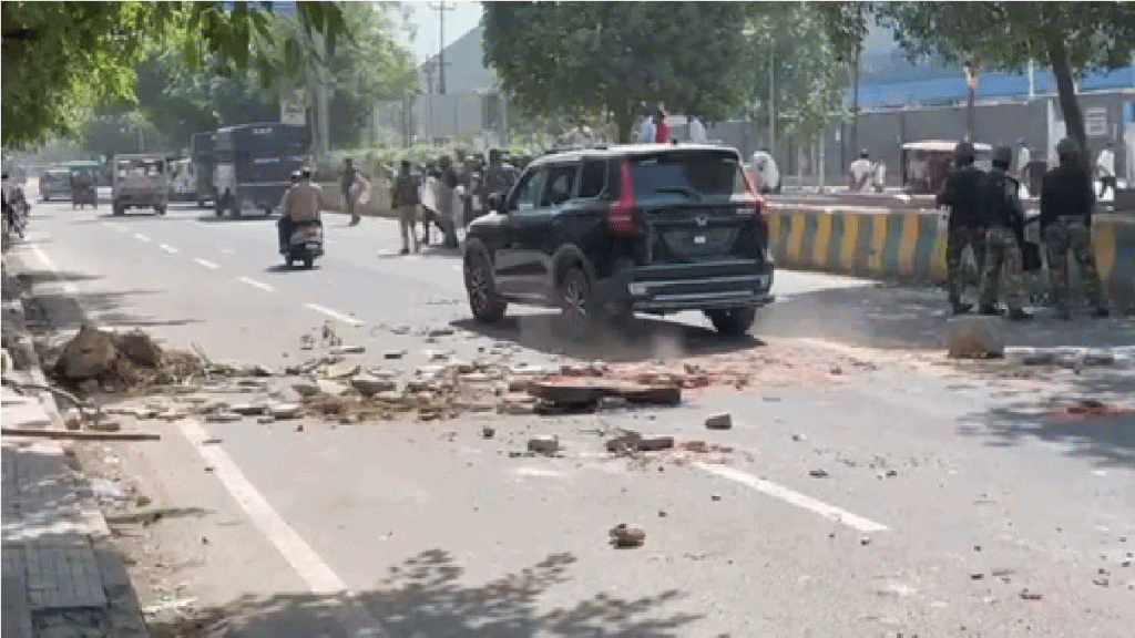 नोएडा में अभी थमा नहीं विवाद, श्रमिकों ने फिर किया पथराव, गाड़ियों में तोड़फोड़, पुलिस ने निकाला फ्लैग मार्च